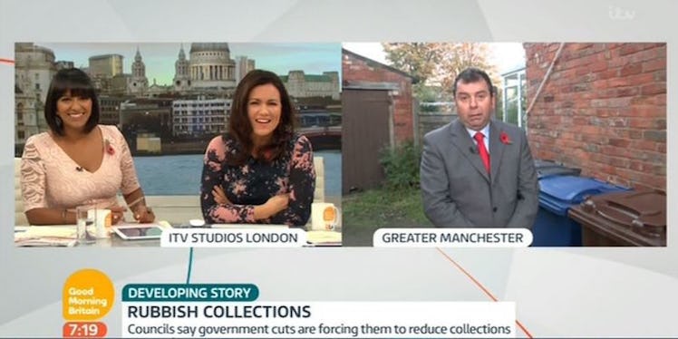 During a segment on "Good Morning Britain," Alan Quinn – who was being interviewed – joked about how one of the hosts, Susanna Reid, had to recycle all the Prosecco bottles she drank at some event.