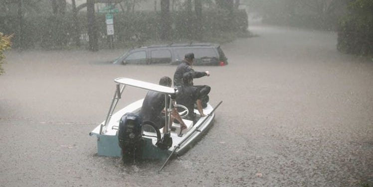 There have been a large variety of rescue efforts going on throughout Houston and the surrounding area in the wake of Hurricane Harvey. The Category 4 hurricane first made landfall on Friday night, Aug. 25. The National Weather Service described the storm as "unprecedented" in a tweet on Sunday, adding that "all impacts are unknown & beyond anything experienced." More than 56,000 calls have been made to 911, ABC News reports, and the City of Houston Twitter account asked residents to only call "if in imminent danger."