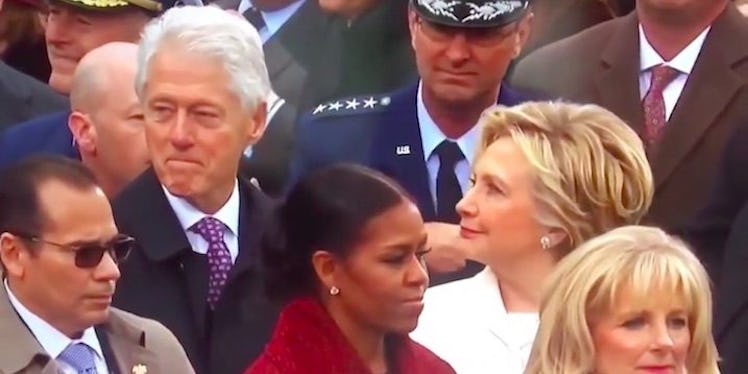 Hillary Clinton attended Donald Trump's presidential inauguration on Friday afternoon alongside her husband, Bill Clinton.