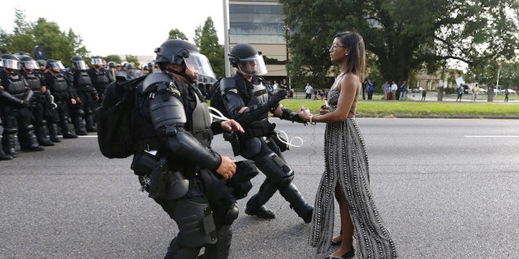 This image of a woman being detained by riot police in Baton Rouge, Louisiana, during a demonstration over the fatal shooting of Alton Sterling stands as one of the year's most iconic images.