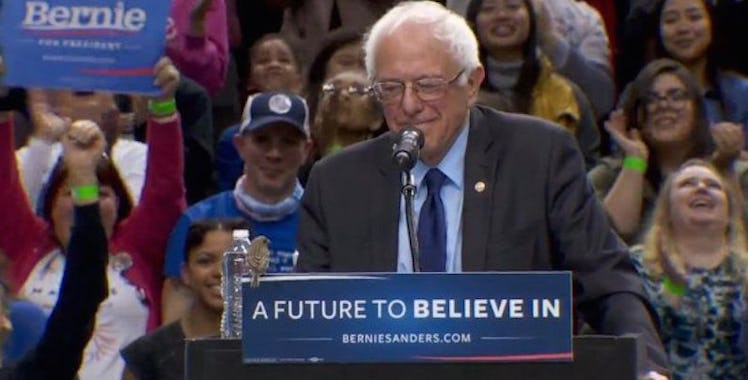 Sanders quickly pointed out the little party crasher, who then decided to fly up onto the podium to let the world know he is totally feeling the Bern.