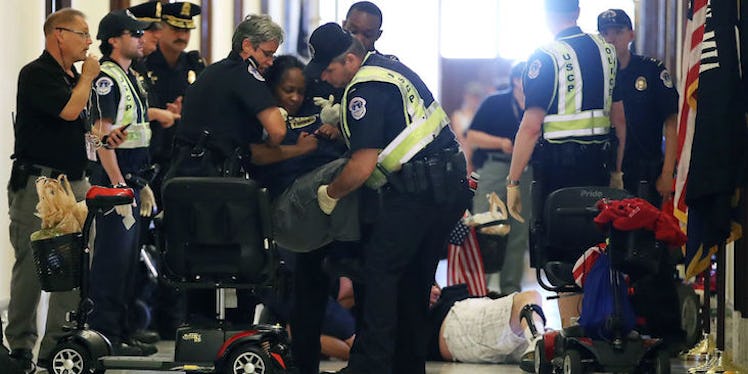 Disabled Protesters Angry Over GOP Health Care Bill Dragged Away In Capitol
