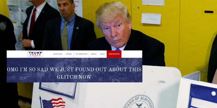 Unfortunately, the Trump website glitch was only publicly recognized for a fleeting amount of time before someone apparently hopped in and plugged that coding gap (can you tell I have no idea how coding works?).