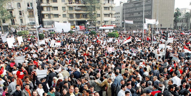 The protestors flowed to Tahrir Square in Cairo as the movement grew and grew and on February 11, Mubarak resigned.