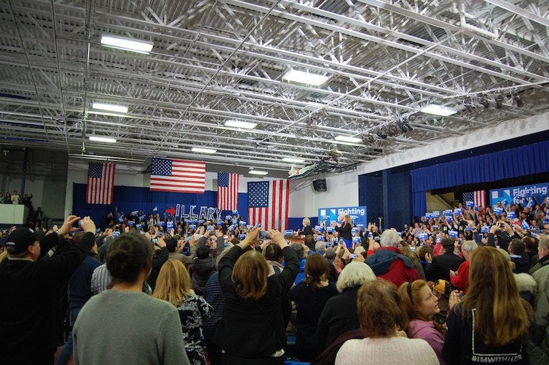 For Jonah Wolff, 21, who was also on the American University trip, it's these kinds of speeches that sway his vote. He came to New Hampshire as an undecided voter between Bernie and Hillary. But after seeing both of them speak several times, he said: