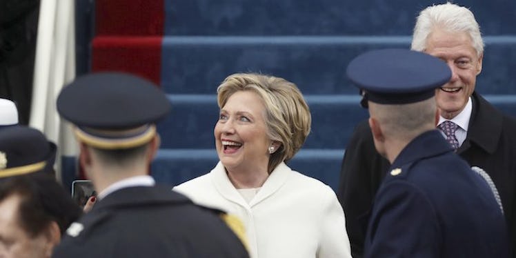 Clinton appeared at the inauguration on Capitol Hill wearing an all-white pantsuit.