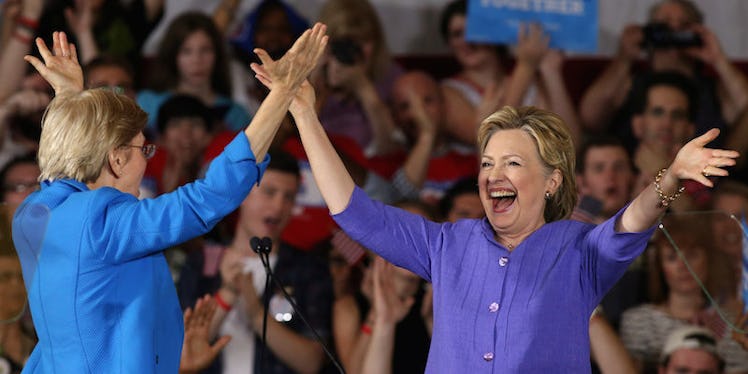 While she is doing so, she is taking the steps to thank and support other women. In her speech on the night she officially clinched the Democratic primary, for instance, she spoke about the fight for women's suffrage at Seneca Falls and her own mother, who was born on the day women got the vote.