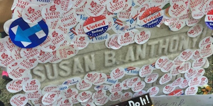 During the New York primary vote, people left their "I Voted" stickers on Anthony's grave up in Rochester, New York.