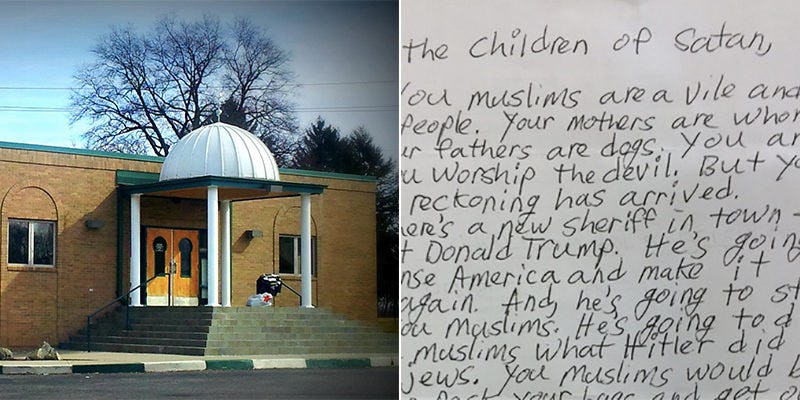 The letter addressed Muslim-Americans as "children of Satan," and warned mosque patrons to "get out of dodge."