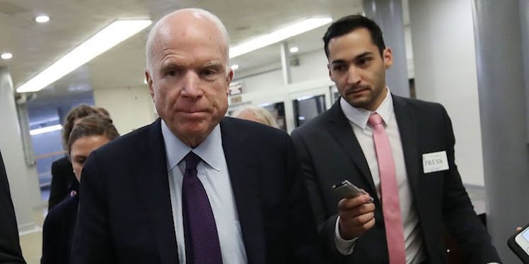 On Friday, Sept. 22, after days that felt like weeks with no official word, the Republica senator from Arizona, John McCain, announced he would vote against the Graham-Cassidy health care proposal. The Graham-Cassidy Amendment is the Republican's latest attempt to repeal and replace the Affordable Care Act (ACA, aka Obamacare). With McCain's "no" vote, the bill appears to be dead on arrival in the Senate, with basically no chances of getting through, and tweets about McCain's Obamacare repeal vote prove people are happy about that.