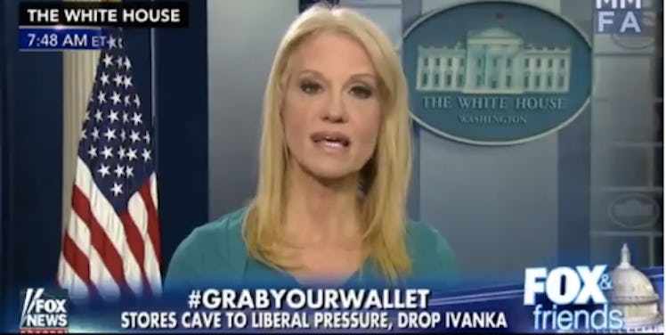 During the segment, she criticized women for criticizing Ivanka (in Conway's world, feminism means supporting ALL WOMEN FOREVER NO MATTER WHAT THEY ENDORSE... AS LONG AS THEY'RE NOT DEMOCRATS) and celebrating the success of the #GrabYourWallet boycott.