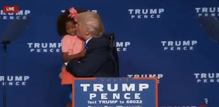 Ten days after video emerged of Donald Trump saying when he sees beautiful women, he "just starts kissing them" and "doesn't even wait," Trump kissed a little girl without even waiting onstage at a rally.