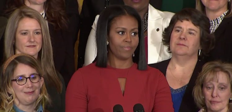 The address was for the 2017 School Counselor of the Year event at the White House. This is especially fitting as Obama has supported education throughout her stay in the White House.
