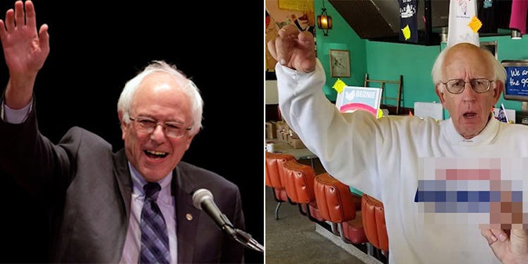 The users argued over whether the photos were of the same man or not, noting that the spacing between the words was different in the photos. Perhaps there are a bunch of old white guys walking around, telling everybody they're not Bernie Sanders.