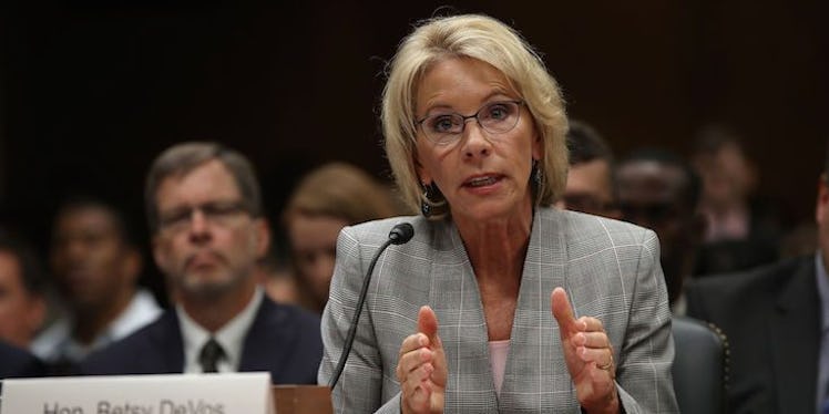 Secretary of Education Betsy DeVos, who was nominated by President Donald Trump, gave remarks on Thursday, Sept. 7 about her plans for Title IX, the landmark law that protects students from gender discrimination. Specifically, DeVos spoke about how she plans to change the government's Title IX work when it comes to sexual violence. But DeVos' Title IX speech got a major concept about sexual violence wrong, and we have to talk about it.