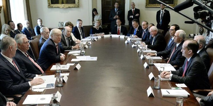 Every single week, roughly a dozen members of President Donald Trump's cabinet meet for a Bible study, according to the Christian Broadcasting Network (CBN). Education Secretary Betsy DeVos, Energy Secretary Rick Perry, Health and Human Services Secretary Tom Price, and CIA Director Mike Pompeo reportedly attend the study regularly. Vice President Mike Pence attends the study when he can, and Trump is given a copy of the scripture teaching each week, according to CBN.
