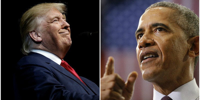 Trump even advised the crowd to go back, watch and "study" Obama's reaction.
