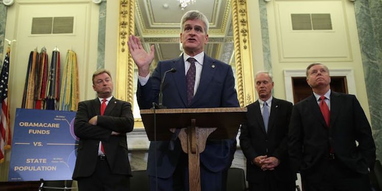 Right now, Republicans are making a push to repeal Obamacare with the so-called Graham-Cassidy amendment. That bill was presented by -- you'll never guess -- Senators Lindsey Graham and Bill Cassidy. The Graham-Cassidy bill takes away Obamacare requirements to let states "create their own health care systems." It would eliminate funding, including on Medicaid, and brings back pre-existing conditions, which means insurance companies can charge people more if they have certain conditions.