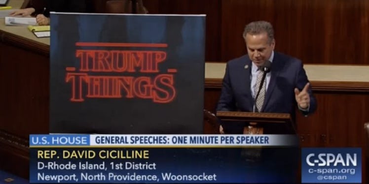 Congressman David Cicilline from Rhode Island took the floor of the House of Representatives on Thursday to compare the Trump administration to the dominion of the Demigorgon known by every "Stranger Things" fan as the Upside Down.