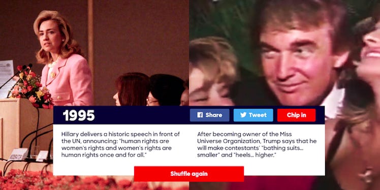 You can shuffle through random years to see what Trump and Hillary were both up to at the time. It's half hilarious and half depressing.