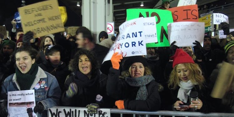 On Saturday, protestors swarmed Terminal 4 at JFK International Airport in response to President Donald Trump's broad executive order that impacts refugees and citizens of a number of predominately Muslim countries.