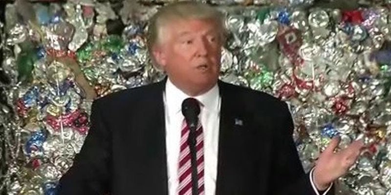 But he chose a very peculiar location to deliver these remarks: The real estate mogul stood in front of what appeared to be a wall of trash.