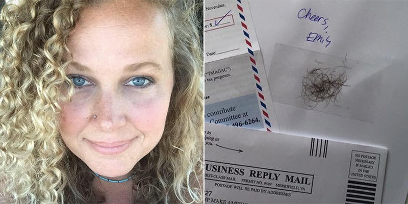 The "next best thing" was her pubes. Yes, she taped some of her pubic hair under her signature in a letter sent directly to Donald Trump.