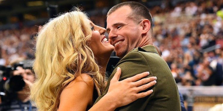 During the game's Soldier Salute, August surprised Candace in person, and it was obviously adorable as heck.