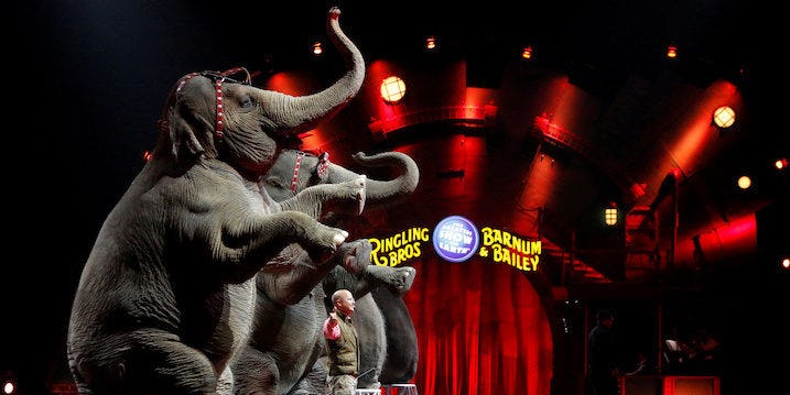 Citations: 'Greatest Show On Earth' Shutting Down After 146 Years (Huffington Post), Ringling Retiring Elephants Is Not Enough, Animal Advocates Say (Huffington Post)