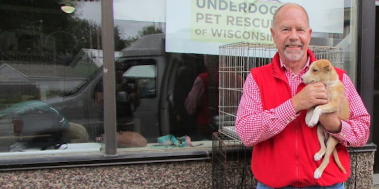 Why did he do this? Well, he was volunteering with a group that deals with Alabama's "surplus of rescued dogs and cats" called Alabama Rescue Relay.