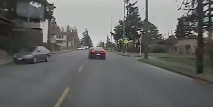 Dash-cam video released by the Seattle Police Department begins with the Camaro being followed by police in northeast Seattle around 1:44 pm.