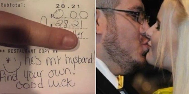 Citations: 'He's my husband, find your own!' Shocked waitress reveals the mean note that an 'insecure' customer left her instead of a tip (Daily Mail), Server posts open letter with advice to newlywed who refused to leave tip (FOX 8)