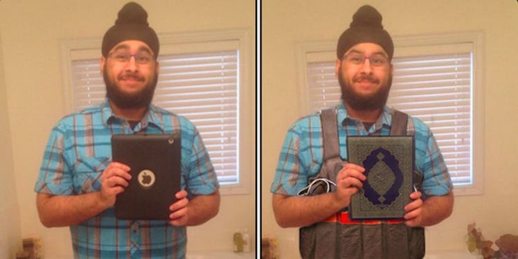 Jubbal's friends quickly rose to his support, calling out the accusations made against him. The image the trolls share of Jubbal is heavily Photoshopped. It was originally a selfie taken with an iPad. Someone changed the iPad to a Quran and added a suicide vest.