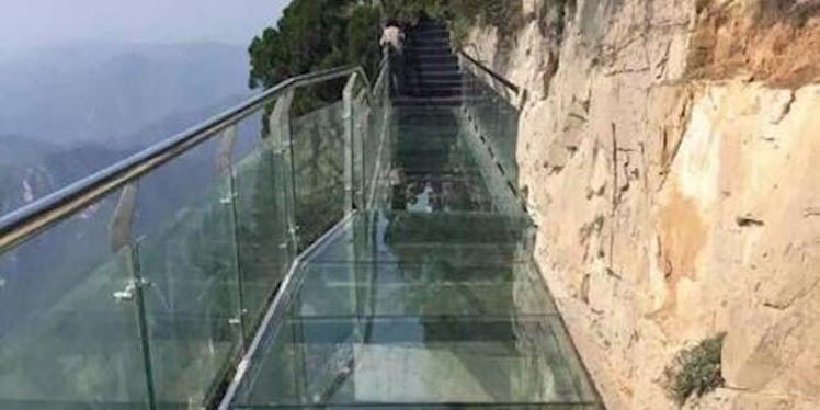 In an effort to correct this injustice, a panel of a new glass walkway perched on the side of Yuntai Mountain Geological Park in Henan Province cracked while people were walking over it on Monday afternoon.