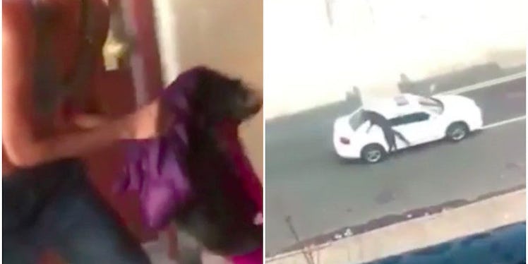 Suddenly, the 19-year-old tosses the cat out of a balcony window and sends it flying across the air.