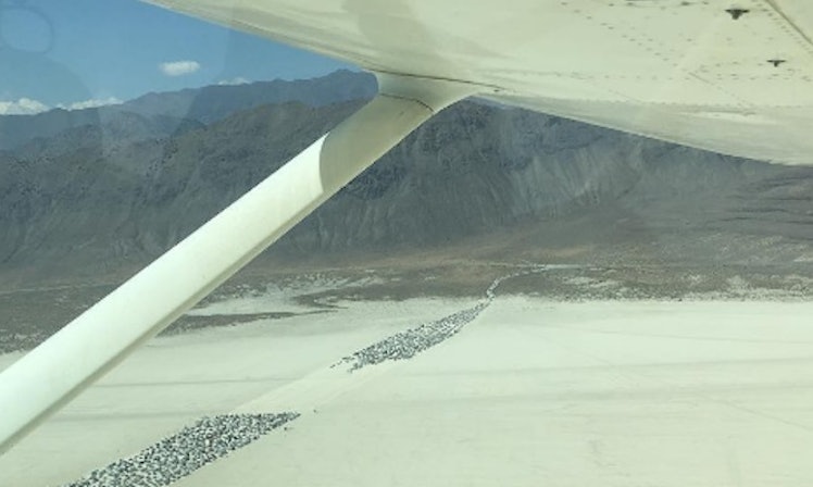 You see an aerial shot of the traffic on Sunday night as 70,000 Burners made their exodus out of "the city in the desert" below.