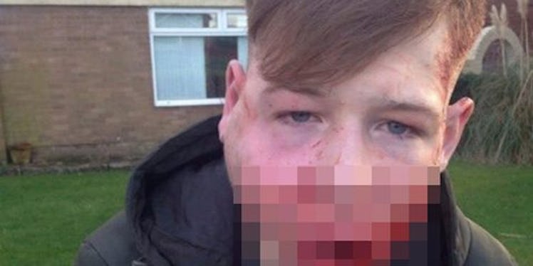In the photos, his face is bloodied and extremely swollen. The young man, 15, was reportedly taken to the hospital with a suspected broken jaw, according to Mail Online.