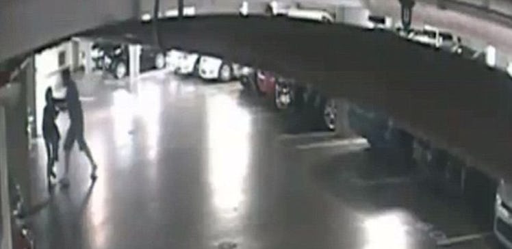 New video footage shows the moment a man followed a woman through a university parking garage, forced her between two cars and allegedly attempted to sexually assault her in broad daylight.