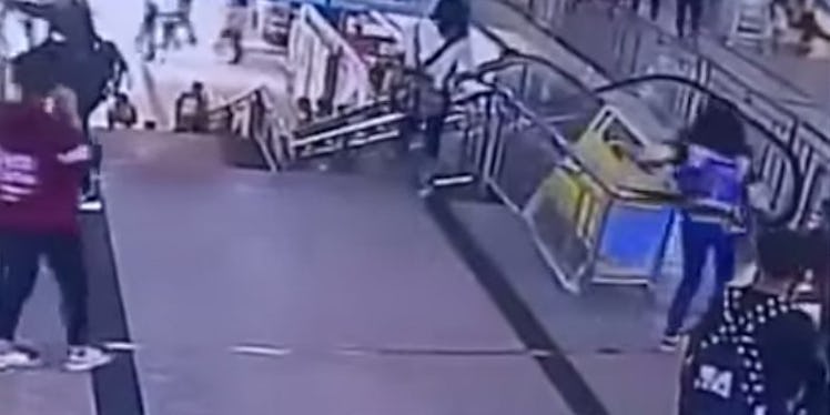 The woman jumped to safety, and nobody was hurt -- possibly because "not many people" were using this specific escalator at the time, a shopper reportedly told local media.