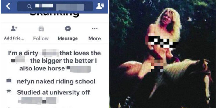A woman made a fake Facebook page about her neighbor claiming she runs naked horse lessons and will "suck off" customers.