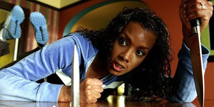 She just purchased a new kitchen knife and quickly began to remove it from its package.