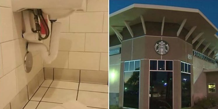 A cell phone camera facing a toilet was found in the bathroom of a California Starbucks.