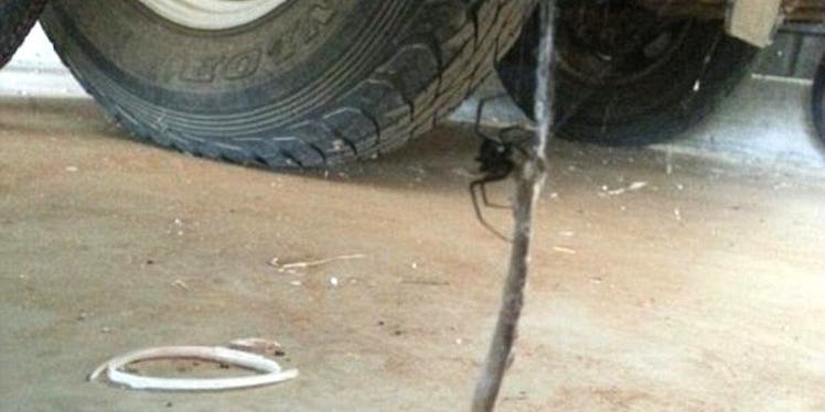 Astonishingly, the creepy-crawly insect managed to hoist the length of a still-living eastern brown snake into its sticky lair.