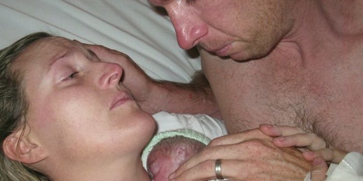 However, Kate's maternal instincts quickly kicked in and she demanded her husband take off his shirt and get in bed with her and their baby son.