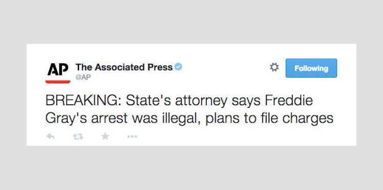 Citations: Prosecutor Cites Probable Cause for Manslaughter Charges in Freddie Gray Case (NYT), Freddie Grays Death Ruled a Homicide (ABC), Police officers charged in Freddie Gray death (CNN)