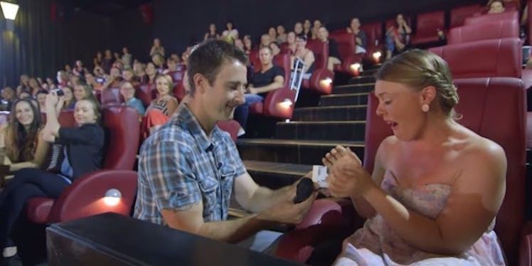 During the previews, Nick arranged for the movie theater to screen a short film he’d made for the proposal, while his unsuspecting girlfriend sat in the audience.