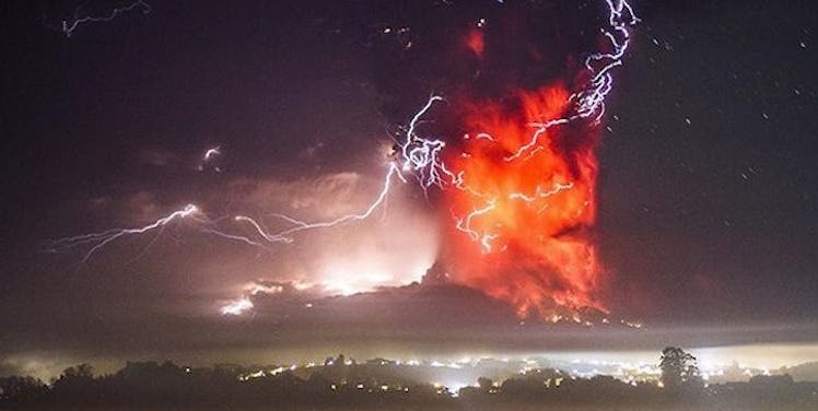 Dazzling photos of lightning forks through billowing ash from Chile's Calbuco volcano: http://t.co/KDvtlFGtyy pic.twitter.com/Ah2Q1o9Fb3 — Mashable (@mashable) April 23, 2015