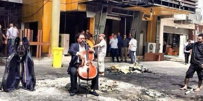 In the wake of a recent series of Baghdad car bomb explosions and the deaths of more than 20 people, Wasfi picked up his cello and played for peace.