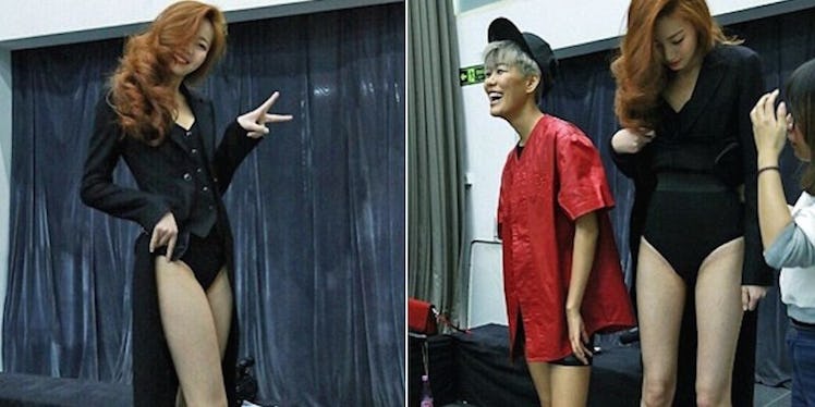 However, 20-year-old Dong Lei takes having long legs to a whole new level.
