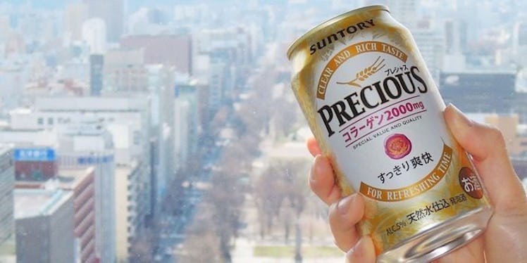 Only available in Hokkaido, Japan, the female-oriented (read: mildly sexist) brew is infused with 2 grams of collagen, a protein found in the skin and nails, and claims to beautify the drinker.
